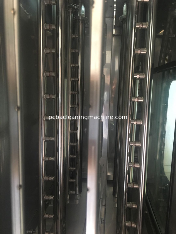 Proceso SME-820: lavado líquido a base de agua - enjuague con agua DI - secado por soplado con aire caliente. SME-820 tiene 4 varillas de spray de limpieza fijas, 4 cuchillos de aire fijos 2 un lado izquierdo y 2 un lado derecho de plantillas.